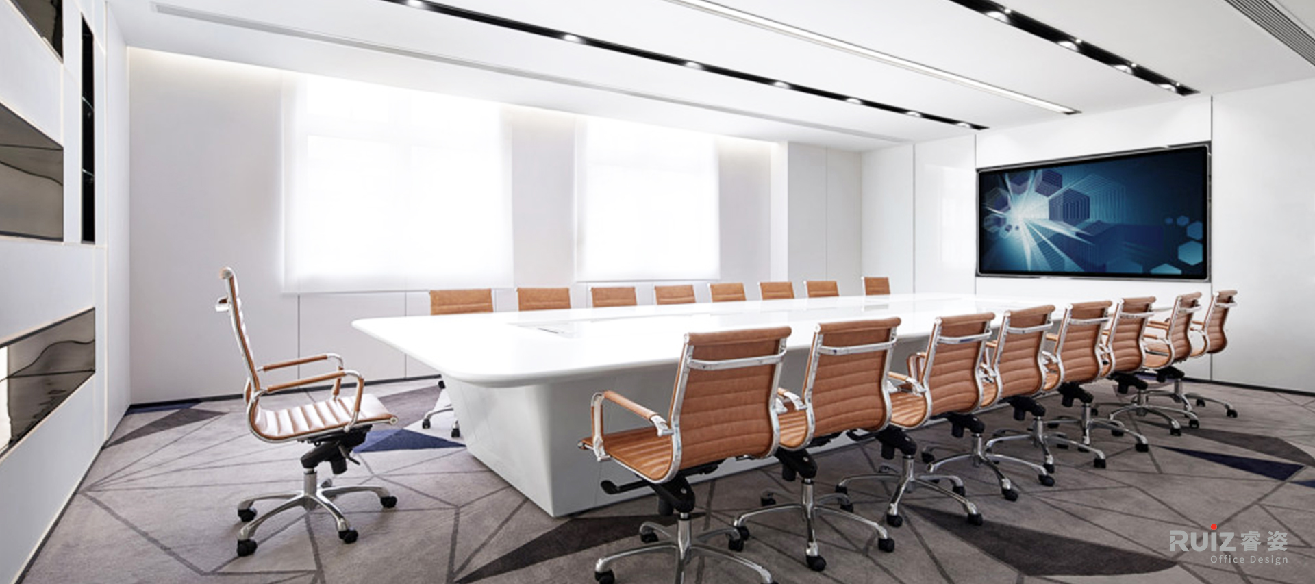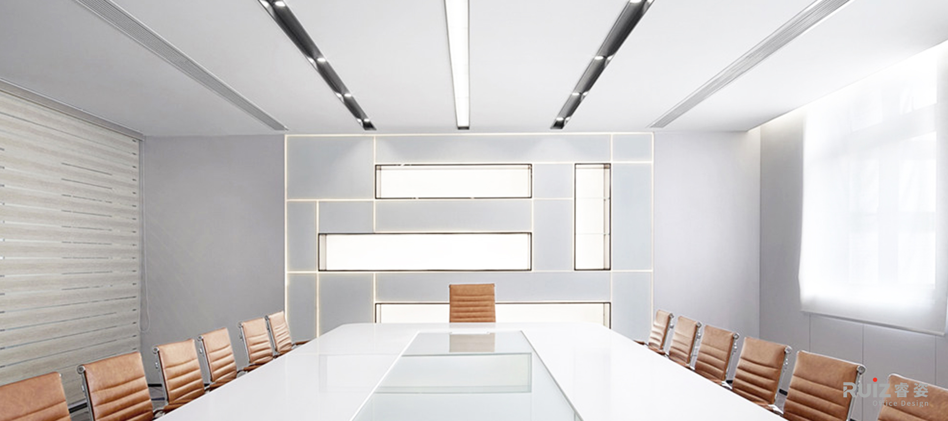 会议室 : 这是核心的功能区域,大型会议室配置了长条形会议桌和多张人体工学座椅,满足多人会议需求,大型显示设备是现代会议空间的标配。充足的自然光和顶部的线型照明系统保证了会议环境的亮度和舒适度。