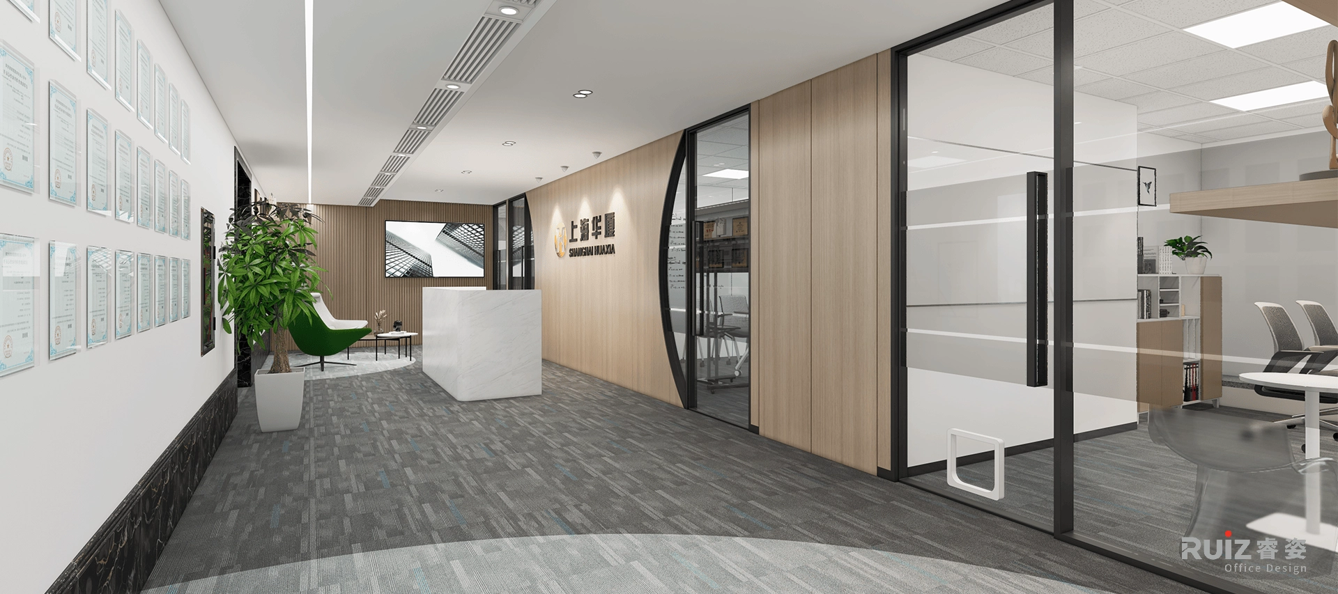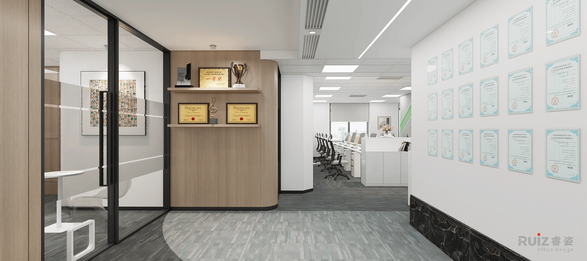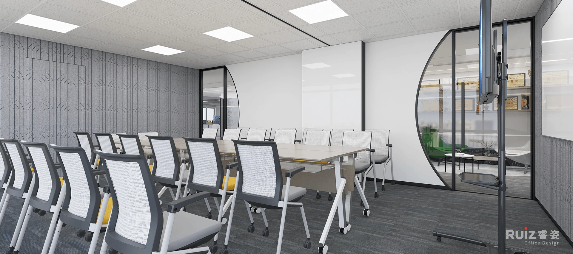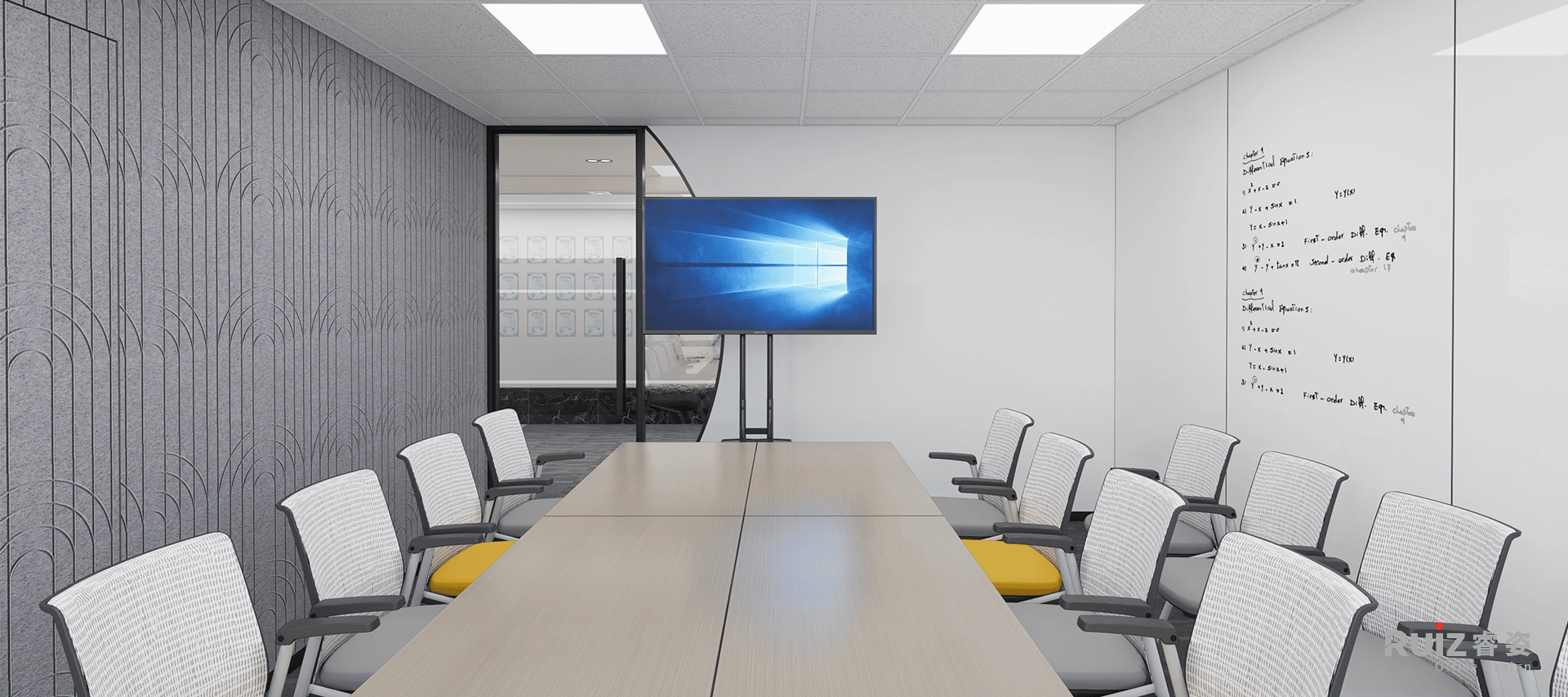 前厅设计中,我们以 “品牌隐形渗透” 为原则,将企业Logo抽象化为空间语言,通过材质、形态与光影的克制表达,实现会议室功能与品牌文化的无界融合,打造理性高效、暗藏文化张力的极简办公场景。