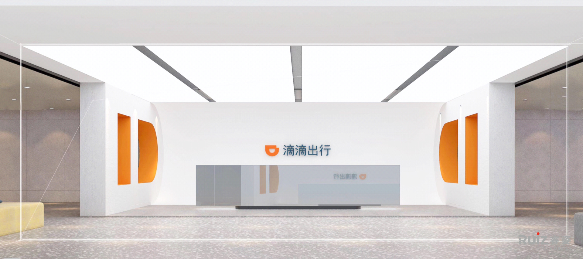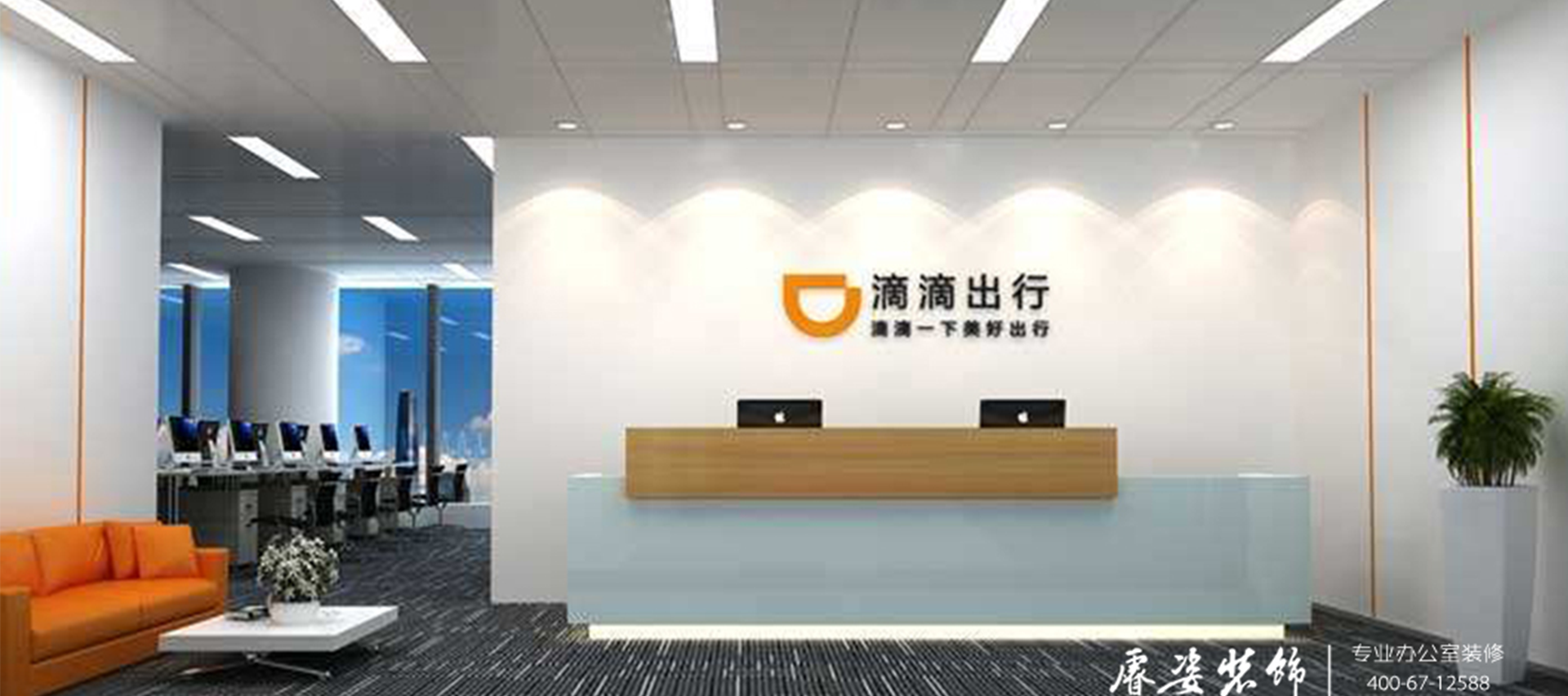 滴滴出行办公空间设计以品牌形象为核心,通过醒目的Logo形象墙和动态灯光强化企业视觉识别,同时以暖木色为主基调,搭配标志性的滴滴橙和生态绿跳色,营造出科技感与自然感并存的氛围。