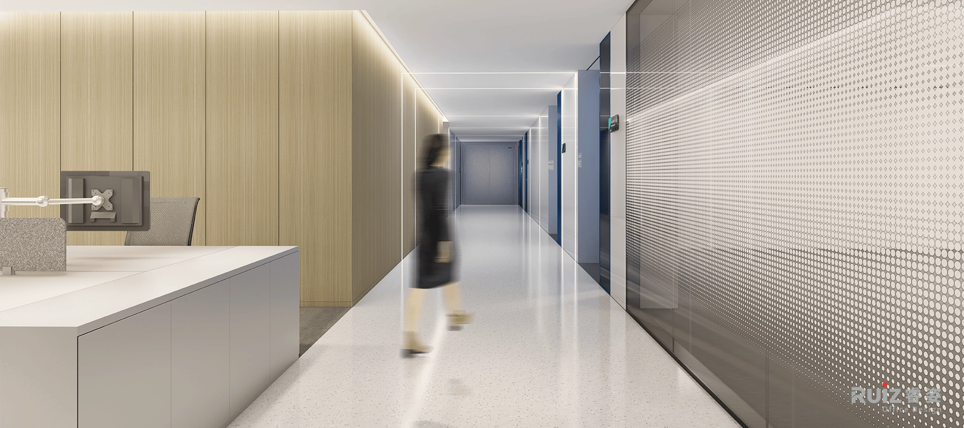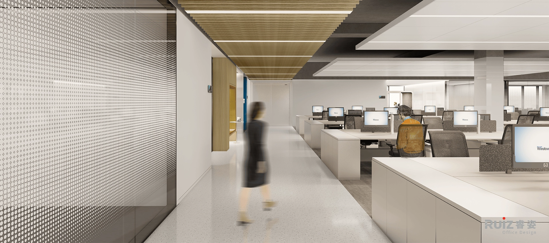 暖色木饰面:大面积使用温润木质肌理,弱化高科技空间的冷峻感,提升员工的舒适感和归属感,体现“科技亦有温度”的设计哲学。