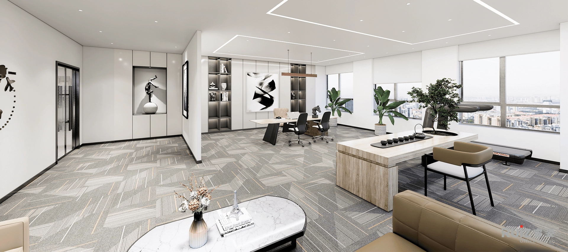 同时通过功能分区优化工作效率与休闲体验,体现总经理沉稳干练的格调。