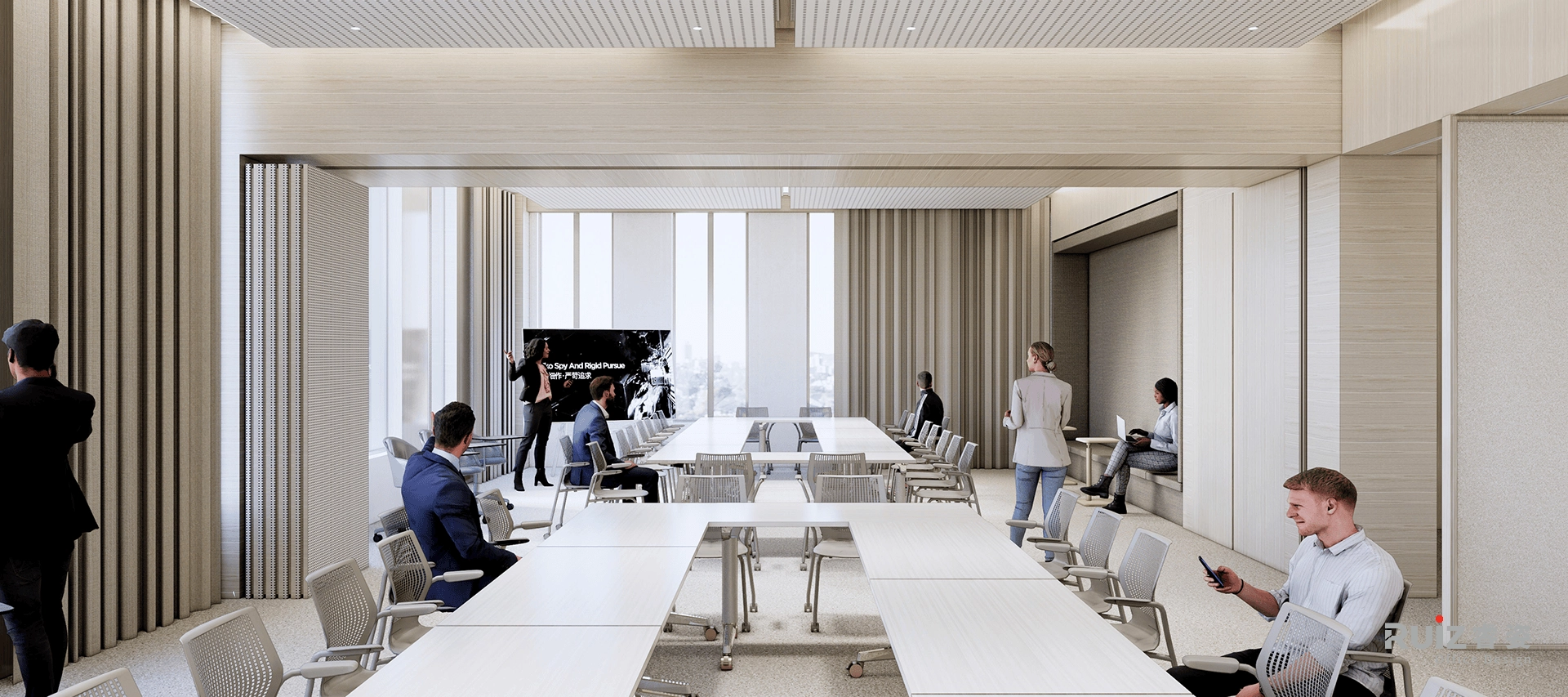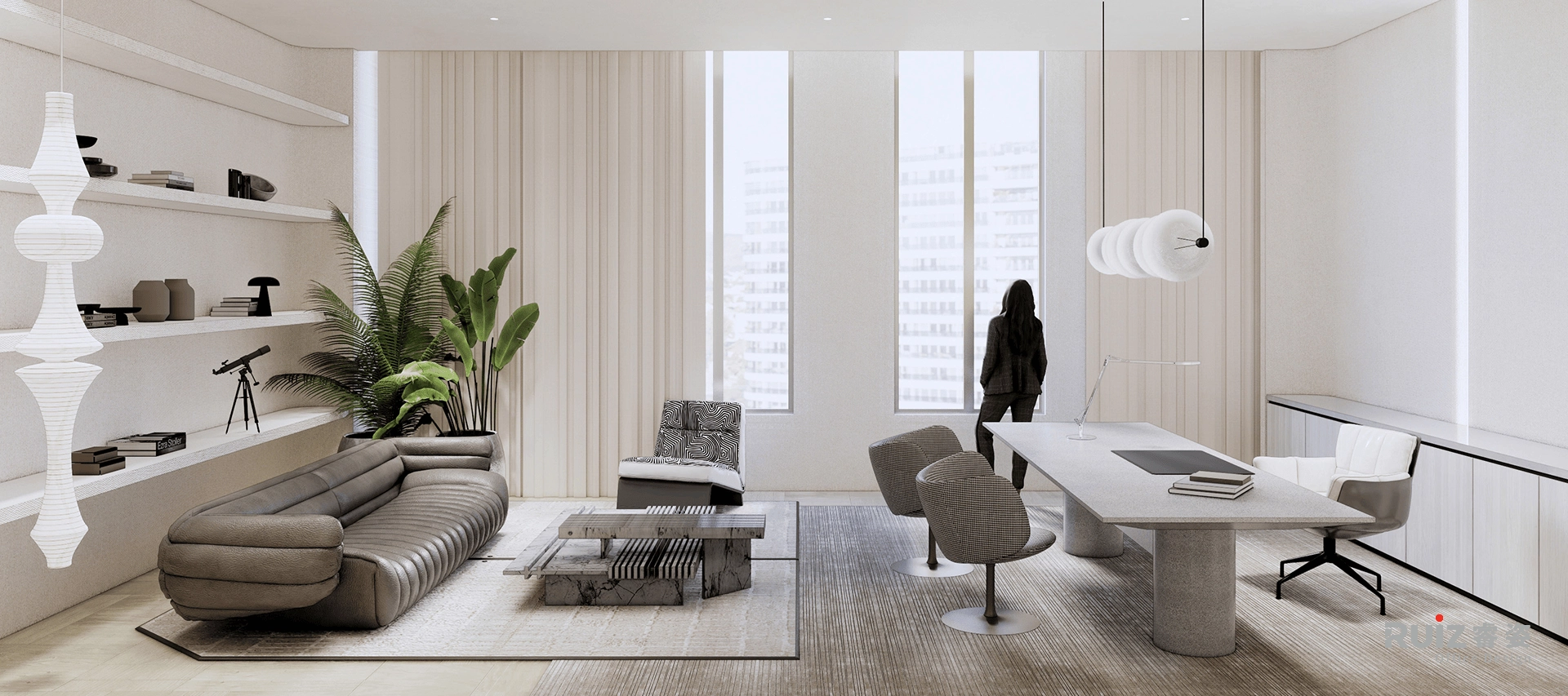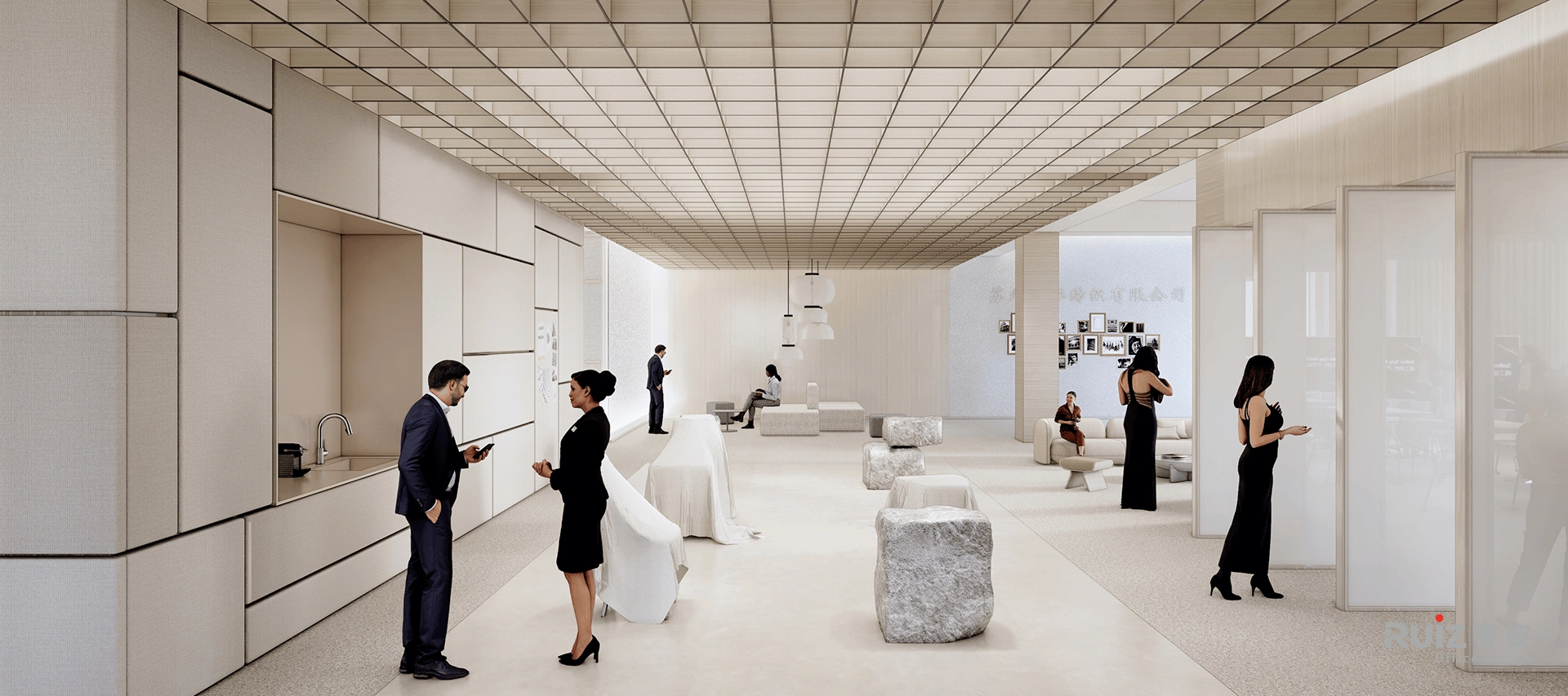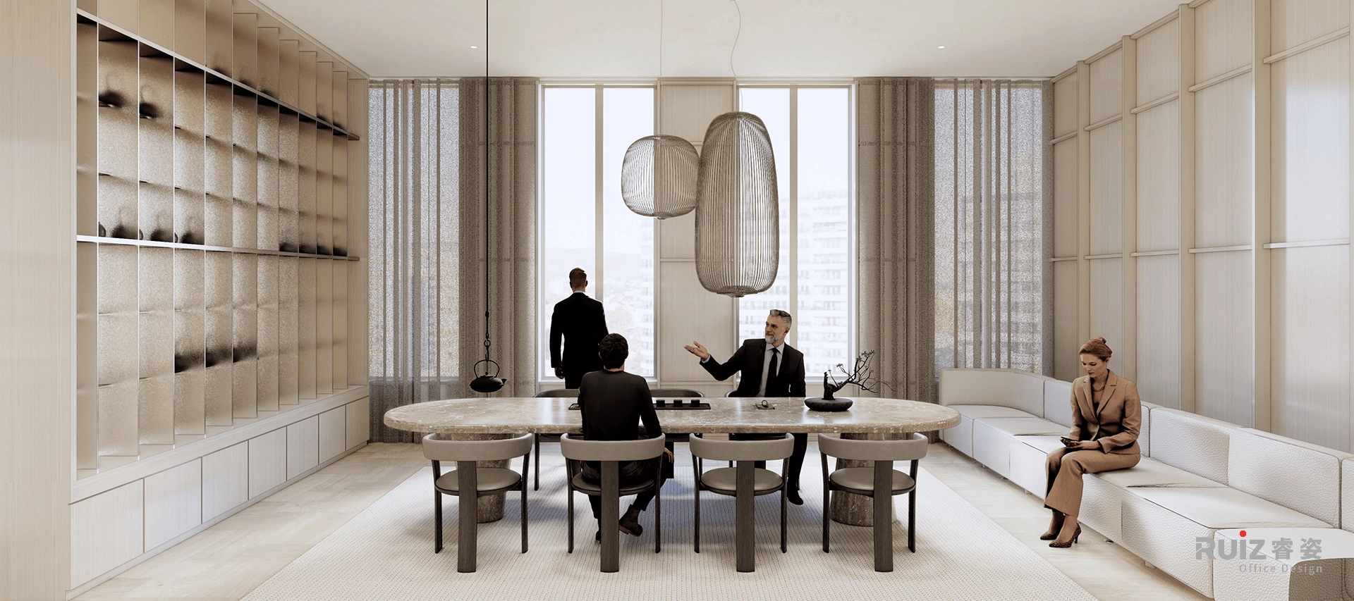打造一个极简日系风格的高端办公展厅空间—— 静雅而不失张力,克制中蕴藏细节的打磨,